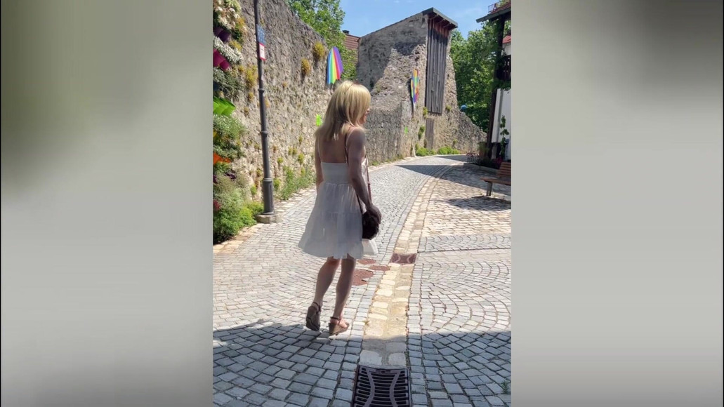 How great summer is! When I'm out there in my light, airy summer dress, I get horny immediately. And of course my companion too. So I keep lifting the dress up so that he can see my hot ass. And that in the middle of the city! I love it! So down with the panties and then the bare ass is presented. On a park bench, I then unabashedly start to jerk off, no matter if anyone sees it... The frivolous little game continues in the cafe, where I jerk off my cock extensively under the table. I'm sure one of the other guests in the cafe noticed that, but that's what makes me even hornier...